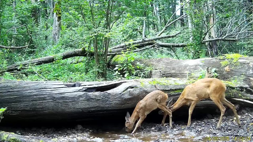 Место на видео хорошо известно научным сотрудникам и инспекторам, именно поэтому в нем и установлена фотоловушка, отметили в заповеднике «Калужские засеки». На этот раз она запечатлела косуль, пришедших к воде.Подписаться ...