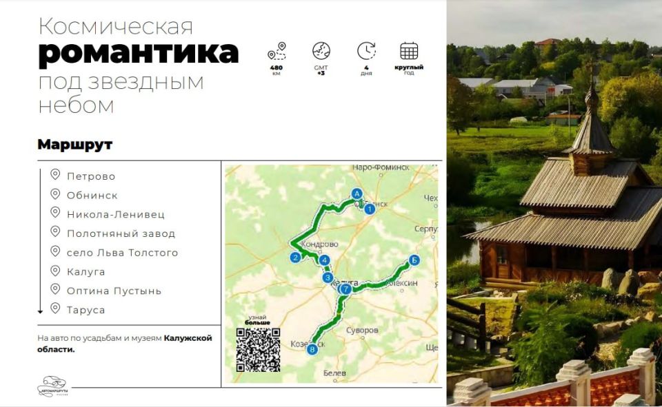 Минэкономразвития России опубликовало на своем сайте каталог «Автотуризм в России». В нем есть маршрут для автопутешествий по музеям и усадьбам Калужской области. Протяженность маршрута под названием «Космическая романтика под звездным небом», который...