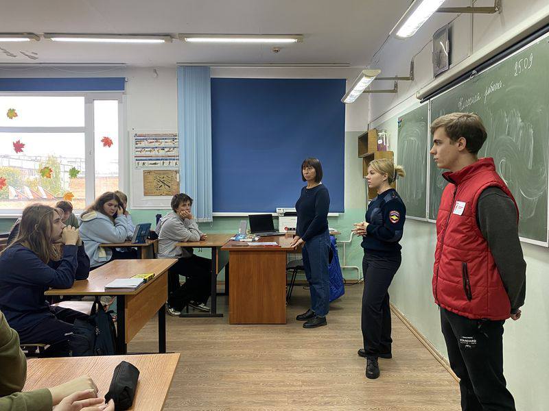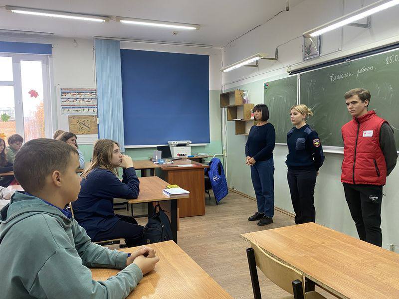 В рамках акции «Защита» представители полиции, Общественного совета и «Движения первых» провели беседу с обнинскими школьниками