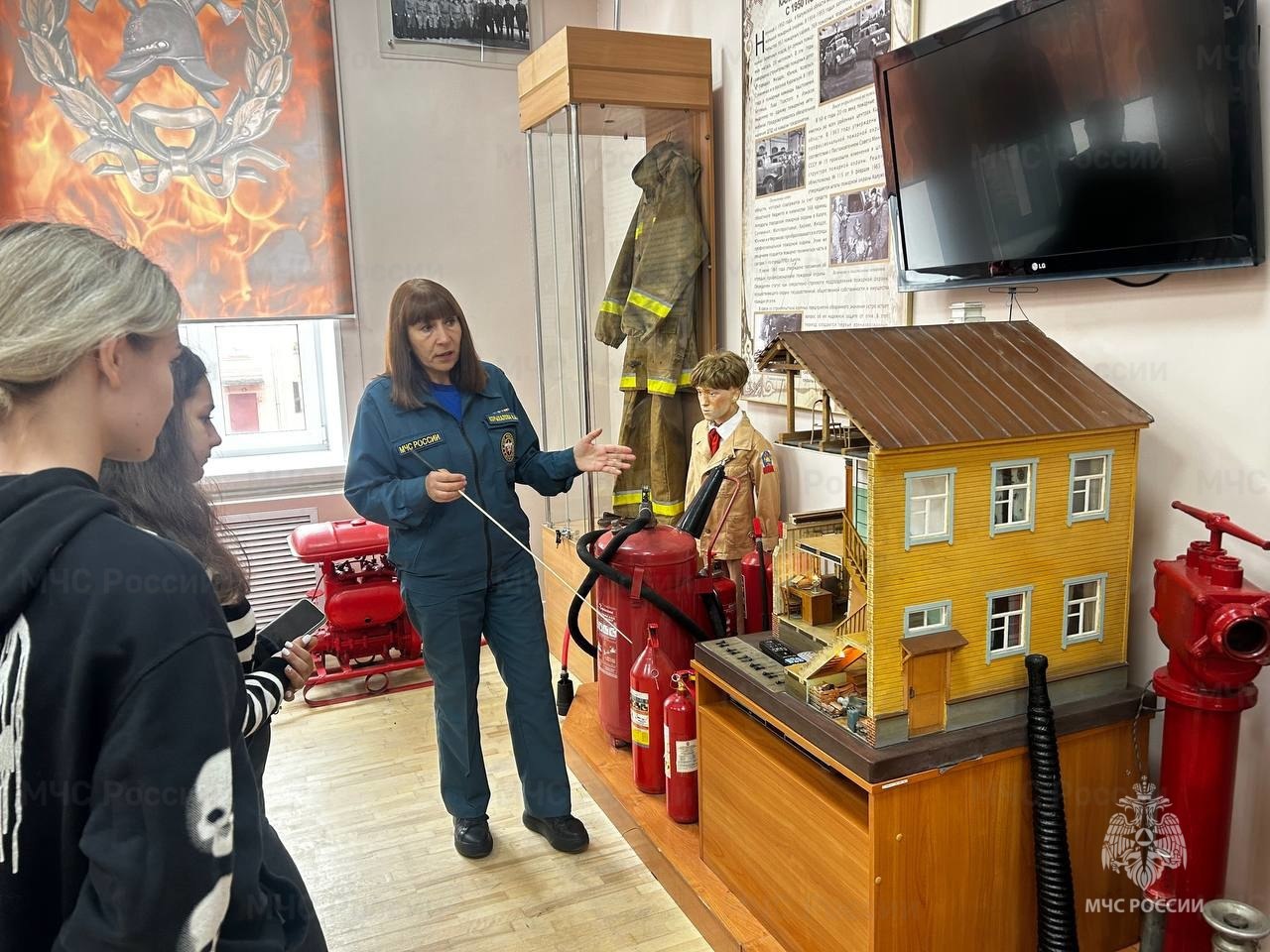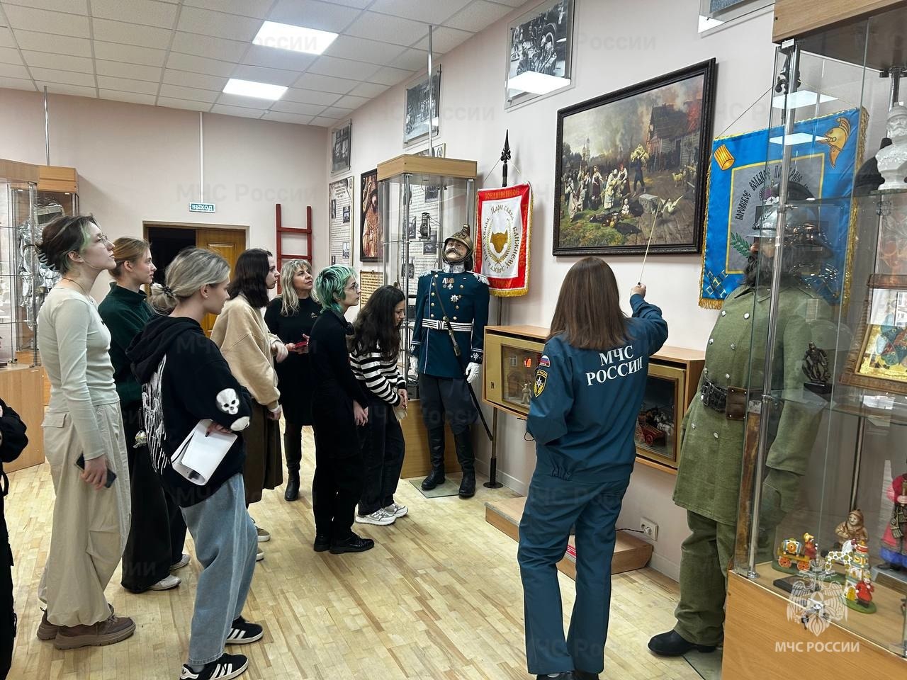 За знаниями в области пожарной безопасности в музейно-выставочный центр Главного управления пришли студенты специальности «Дизайн среды и интерьера» КГУ им. К.Э. Циолковского.