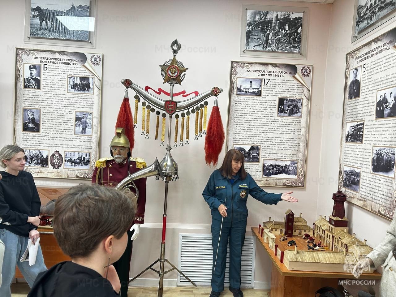 В ходе экскурсии начальник центра пропаганды Наталья Корыхалова познакомила с историей создания пожарной охраны России, Калужского края, напомнила о соблюдении правил пожарной безопасности и последствиях происходящих пожаров.