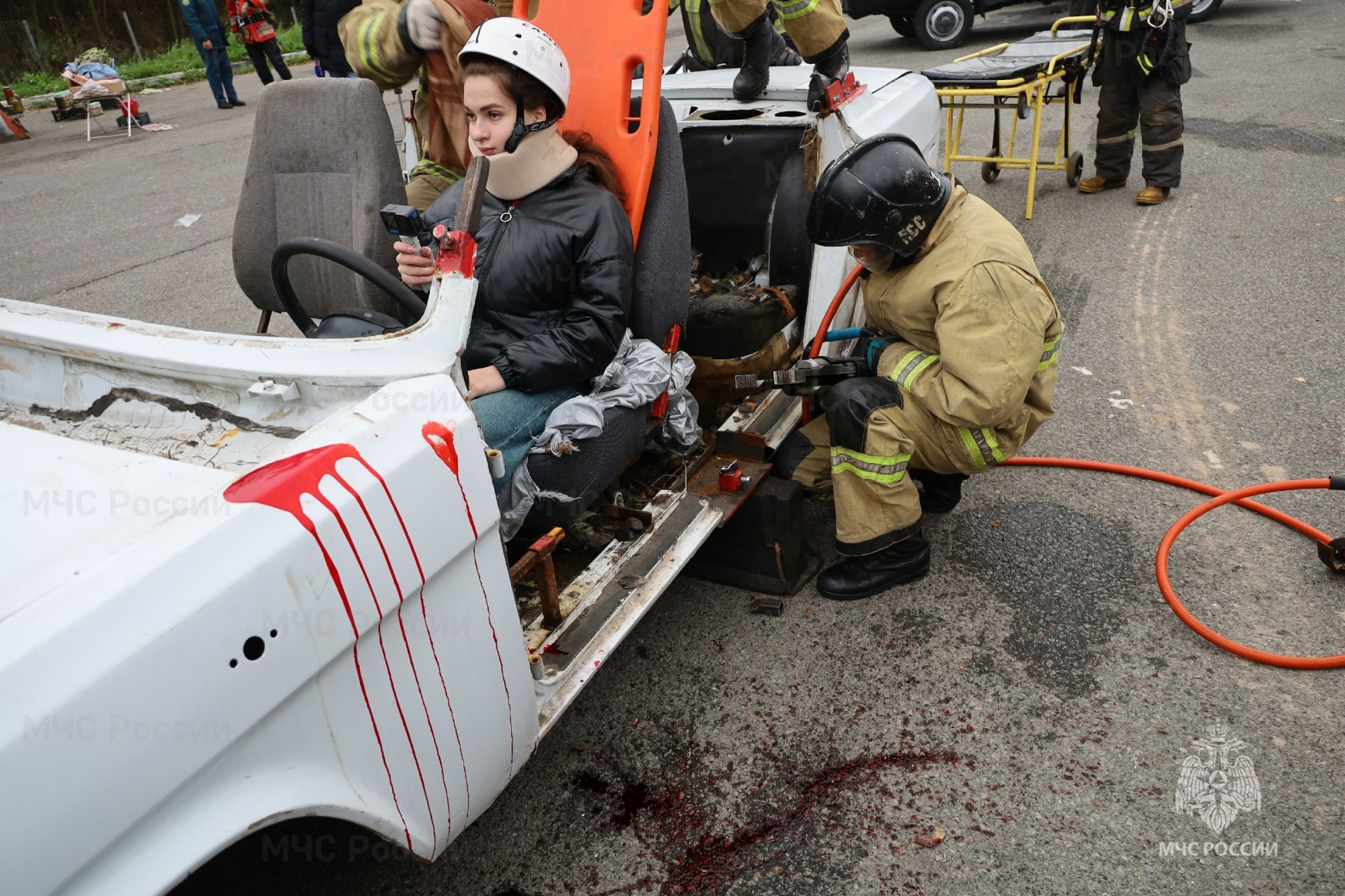 Сценарий учений был максимально приближен к реальным условиям: в результате бокового столкновения двух автомобилей «Нива Шевроле» и «Волга» (использовался тренажёр для отработки ДТП) пострадали несколько человек. Водитель «Волги» с закрытым переломом голени оказался заблокирован в салоне. Трое пассажиров «Нива Шевроле» получили легкие травмы.