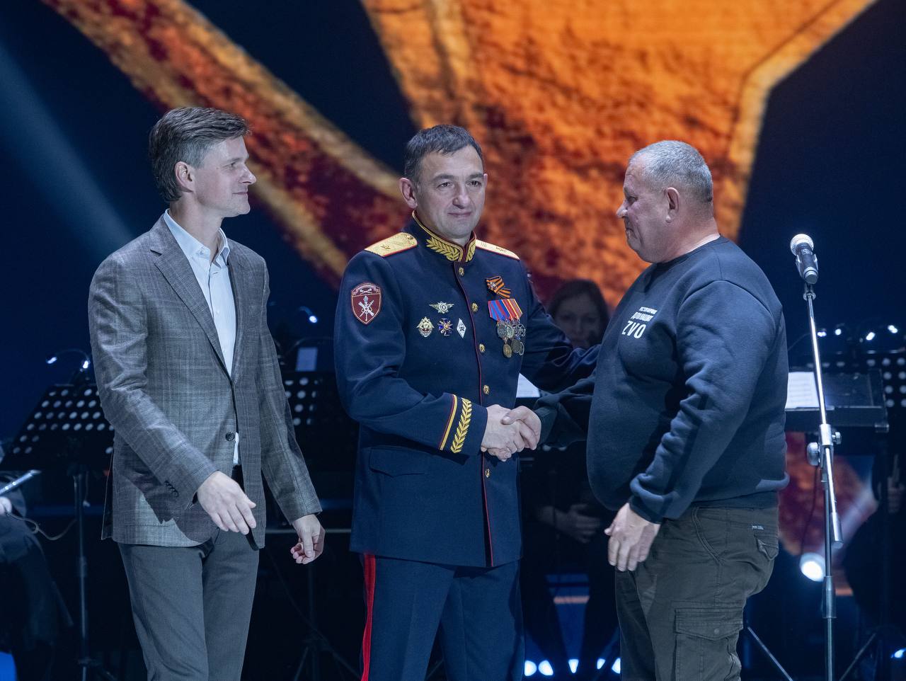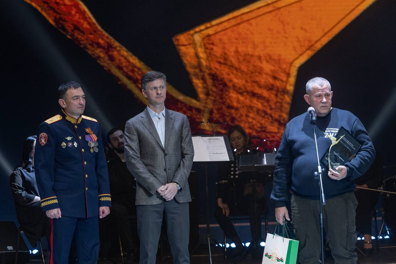 Генерал-майор полиции Сергей Деревяшкин в торжественной обстановке вручил статуэтку «Взлетающий журавль» Сергею Скрипкину - руководителю проекта «Ресторанчик для наших ZVO». В волонтерском пункте не только кормят бойцов, но и отправляют нашим воинам в зону спецоперации еду, вещи, подарки и письма.