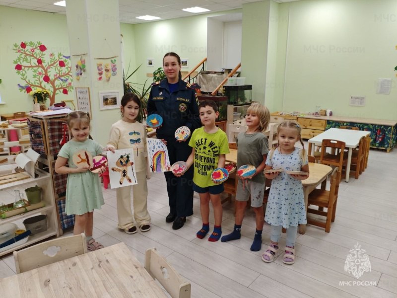 Сотрудники МЧС объяснили детям, как вести себя при возгорании, по какому номеру звонить в службу спасения (112) и почему нельзя прятаться от огня. Ребята с удовольствием отгадывали загадки, а затем приняли участие в конкурсе рисунков «МЧС глазами детей».