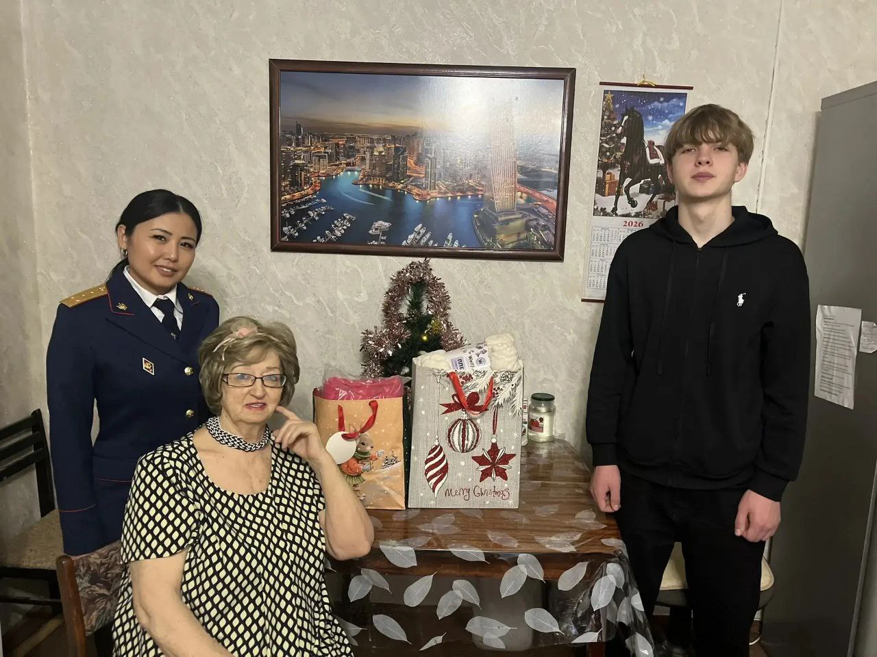 Помощник руководителя по общественно-политической работе Валерия Очирова и ученик подшефной средней общеобразовательной школы №45 Александр Васильев навестили семью военных пенсионеров.