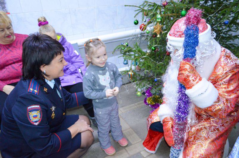В канун Нового года ничего не подозревавшие мальчишки и девчонки в сопровождении родителей, руководителя и педагога центра в назначенное время пришли в ОМВД России по Малоярославецкому району, где в фойе их уже ждали Дед Мороз и Снегурочка с большим мешком подарков.