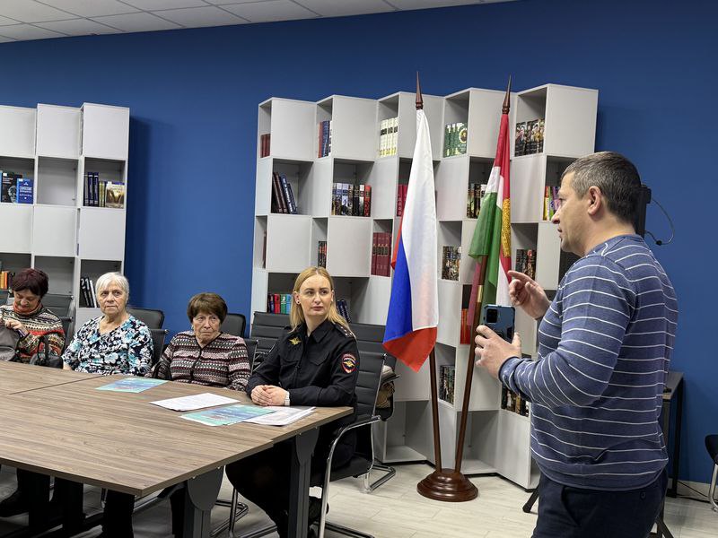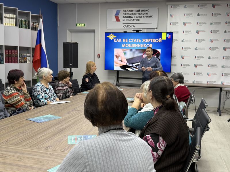 В Калуге по инициативе члена Общественного совета при территориальном органе Данила Сагдуллина в Калужской областной научной библиотеке им. В.Г. Белинского участковый уполномоченный полиции Руслана Сафронова провела профилактическую беседу для пожилых калужан, рассказав им, как не стать жертвой мошенников.