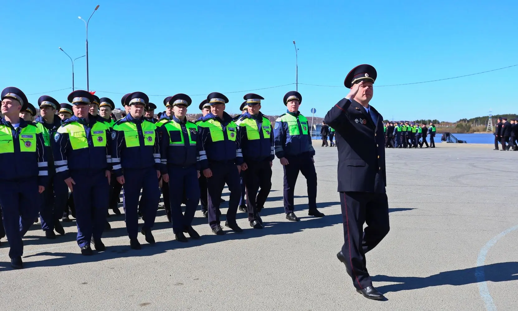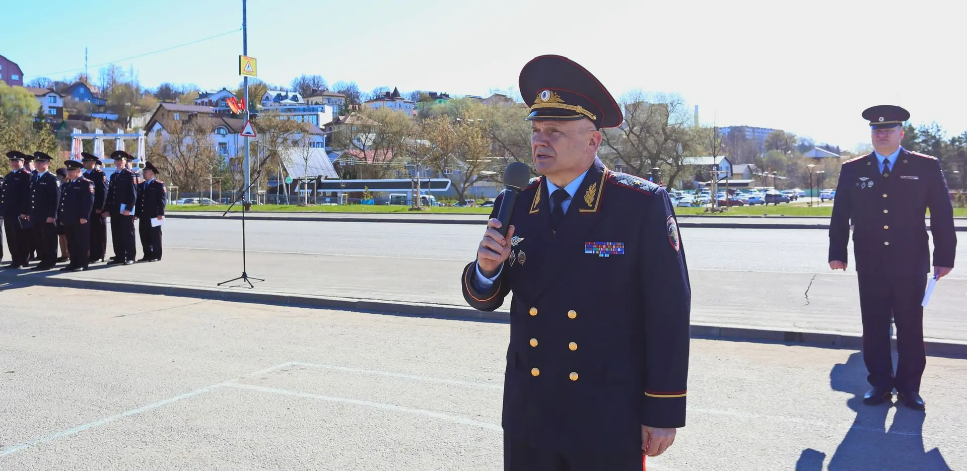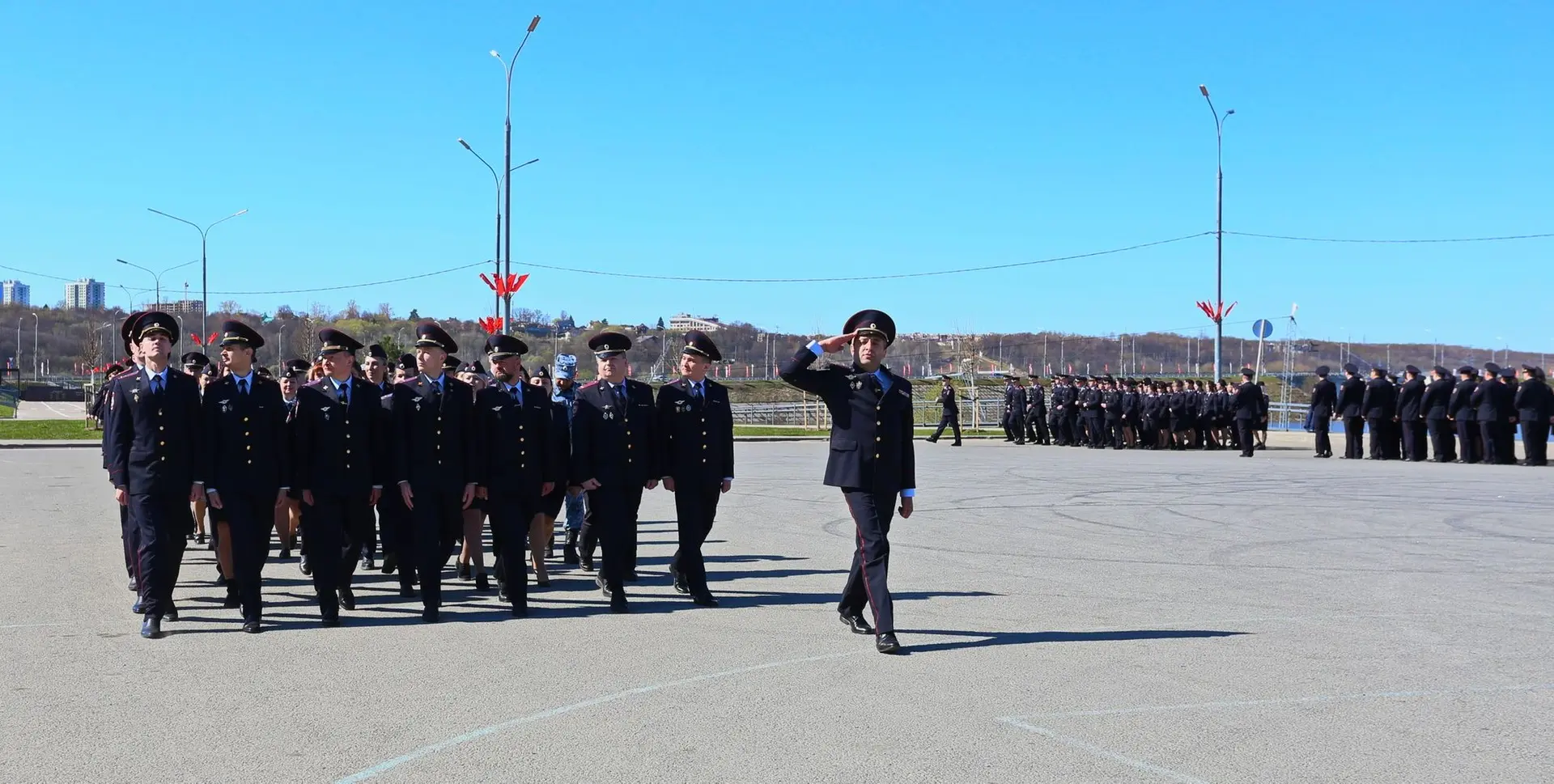 На набережной Яченского водохранилища в Калуге состоялся строевой смотр личного состава регионального УМВД под руководством генерал-майора полиции Сергея Никифорова.