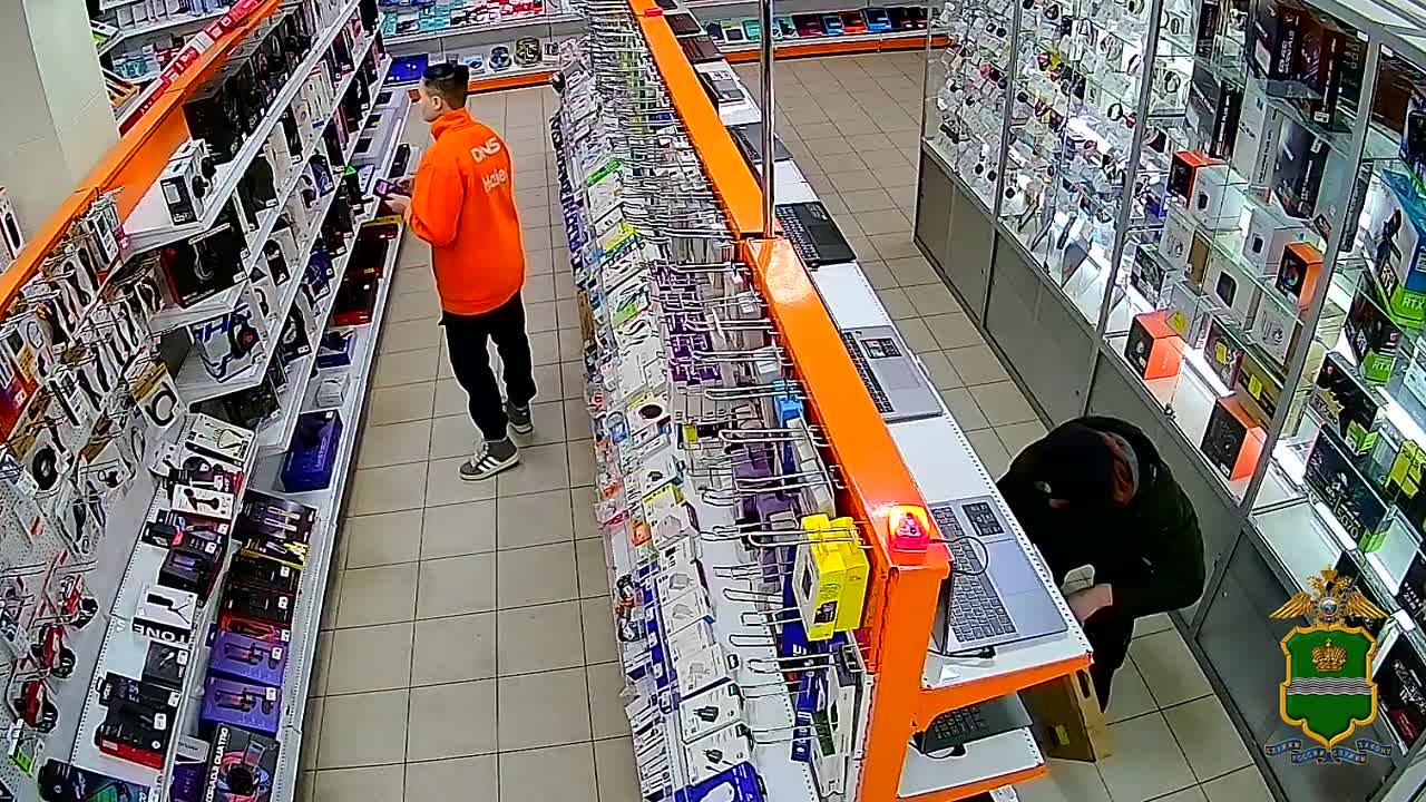 В результате проведения оперативно-розыскных мероприятий сотрудниками уголовного розыска подозреваемый был установлен. Им оказался местный житель 1979 года рождения. На видеозаписи видно, как фигурант, убедившись, что за его действиями никто не наблюдает, взял с витрины коробку с наушниками, спрятал её в рюкзак и покинул магазин, минуя кассовую зону.