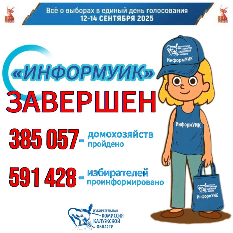 В период с 20 августа по 10 сентября 2 613 членов участковых комиссий оповестили 74,4 % избирателей Калужской области и прошли 98,6% домохозяйств.Итоги работы по адресному информированию избирателей:- пройдено 385 057 домохозяйств;-...