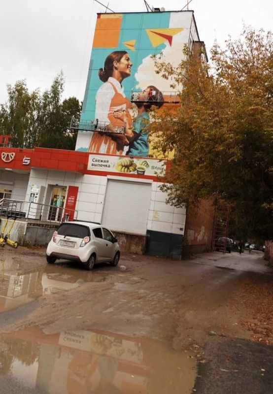 Информация о новом мурале и проблемной луже поступила из официального сообщества Правого берега в социальной сети «ВКонтакте». Администрация паблика опубликовала фотографии масштабного рисунка, который создают на стене дома по улице Генерала Попова...