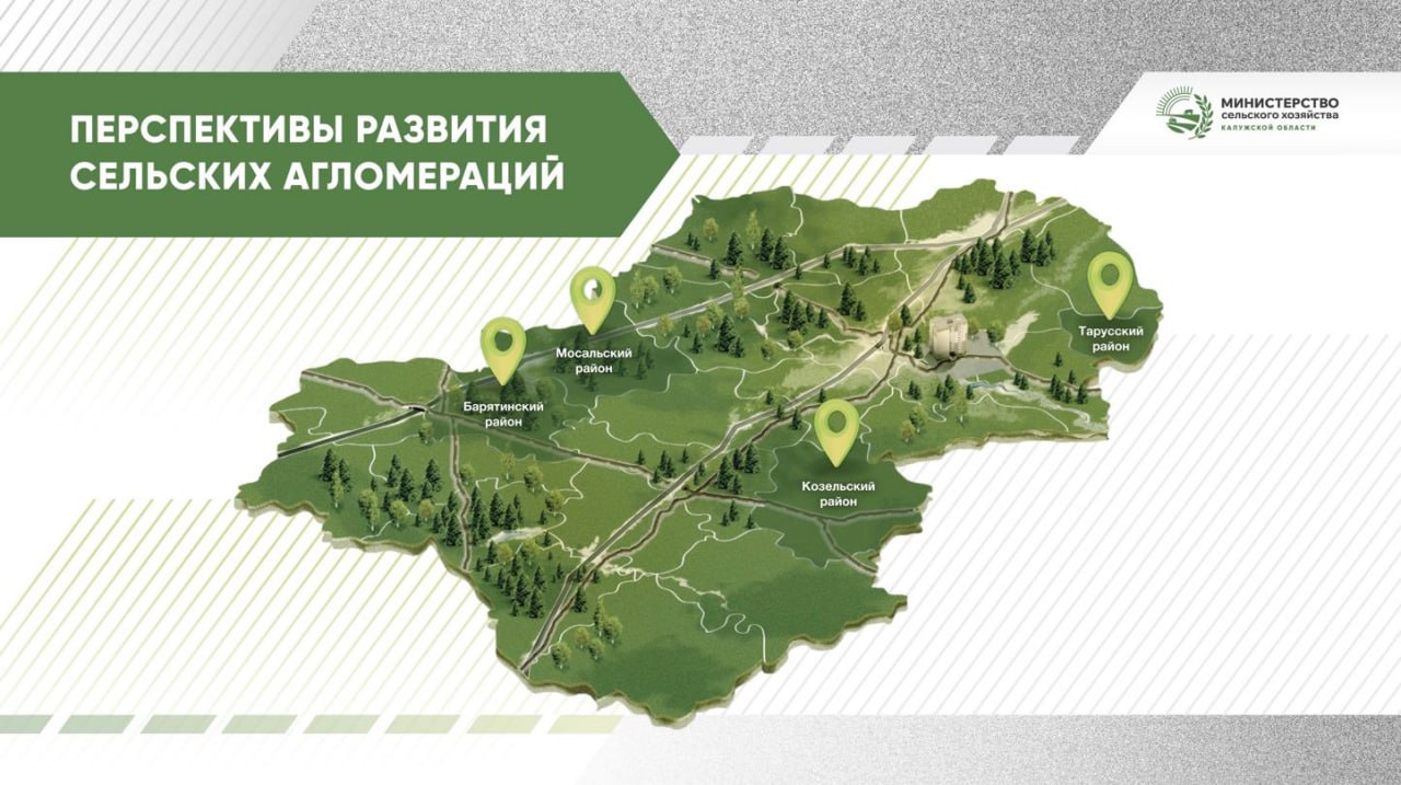 С 2026 года развитие сельских территорий будет вестись в рамках Стратегии пространственного развития РФ с акцентом на опорные населённые пункты, имеющие долгосрочные планы роста. В настоящее время на конкурс в Минсельхоз России поданы четыре таких плана — для Козельска, Тарусы, Мосальска и села Барятино. Итоги подведут в ноябре.