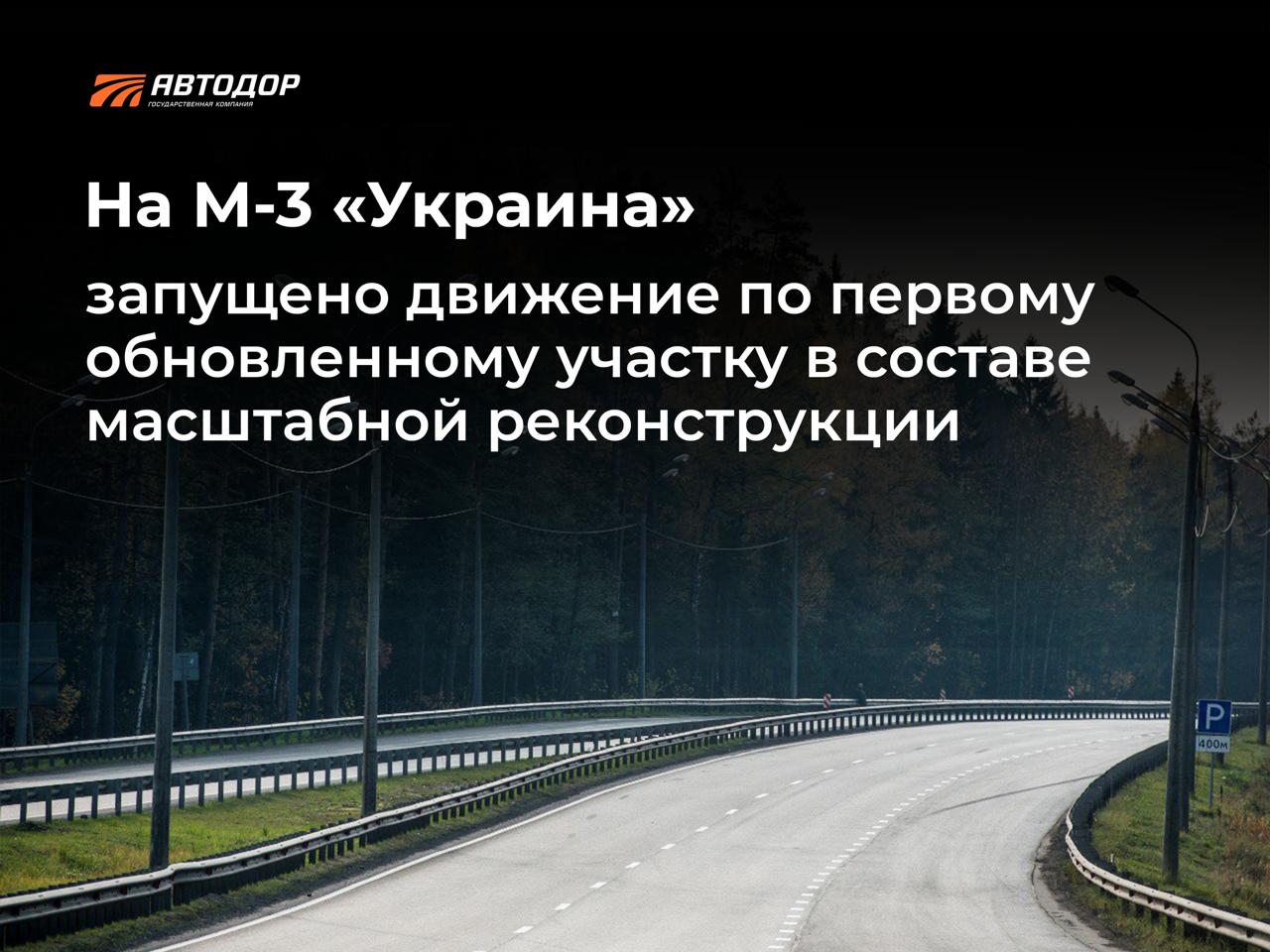Запущено движение по первому обновленному участку в составе реконструкции трассы М-3 «Украина»
