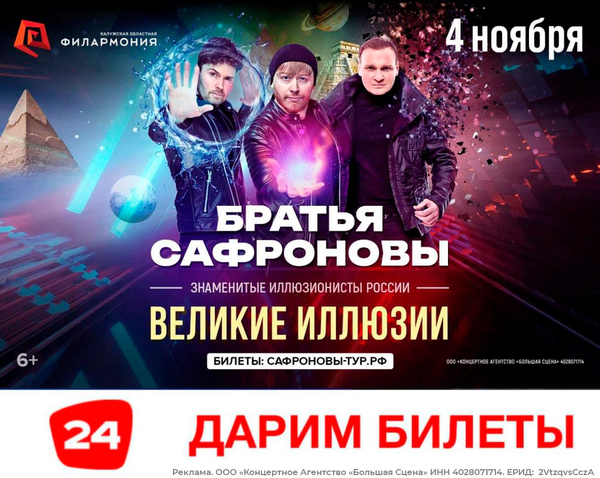 Всемирно известные иллюзионисты Братья Сафроновы представляют уникальное шоу «Великие иллюзии», где реальность встречается с волшебством! Представление состоится 4 ноября на сцене Калужской Филармонии.