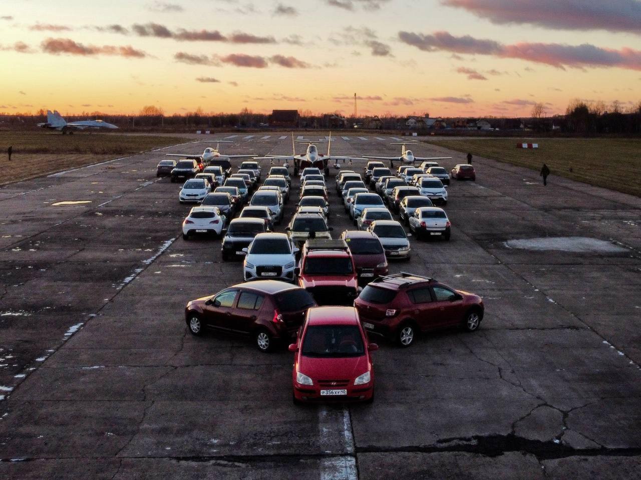 В минувшую субботу автомобилисты выстроились в форме ёлки на взлетной полосе авиапарка «Орешково».