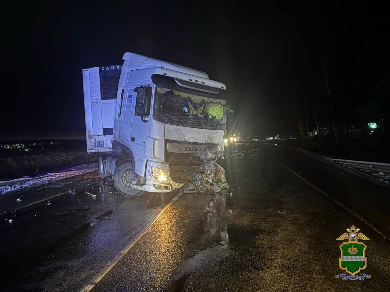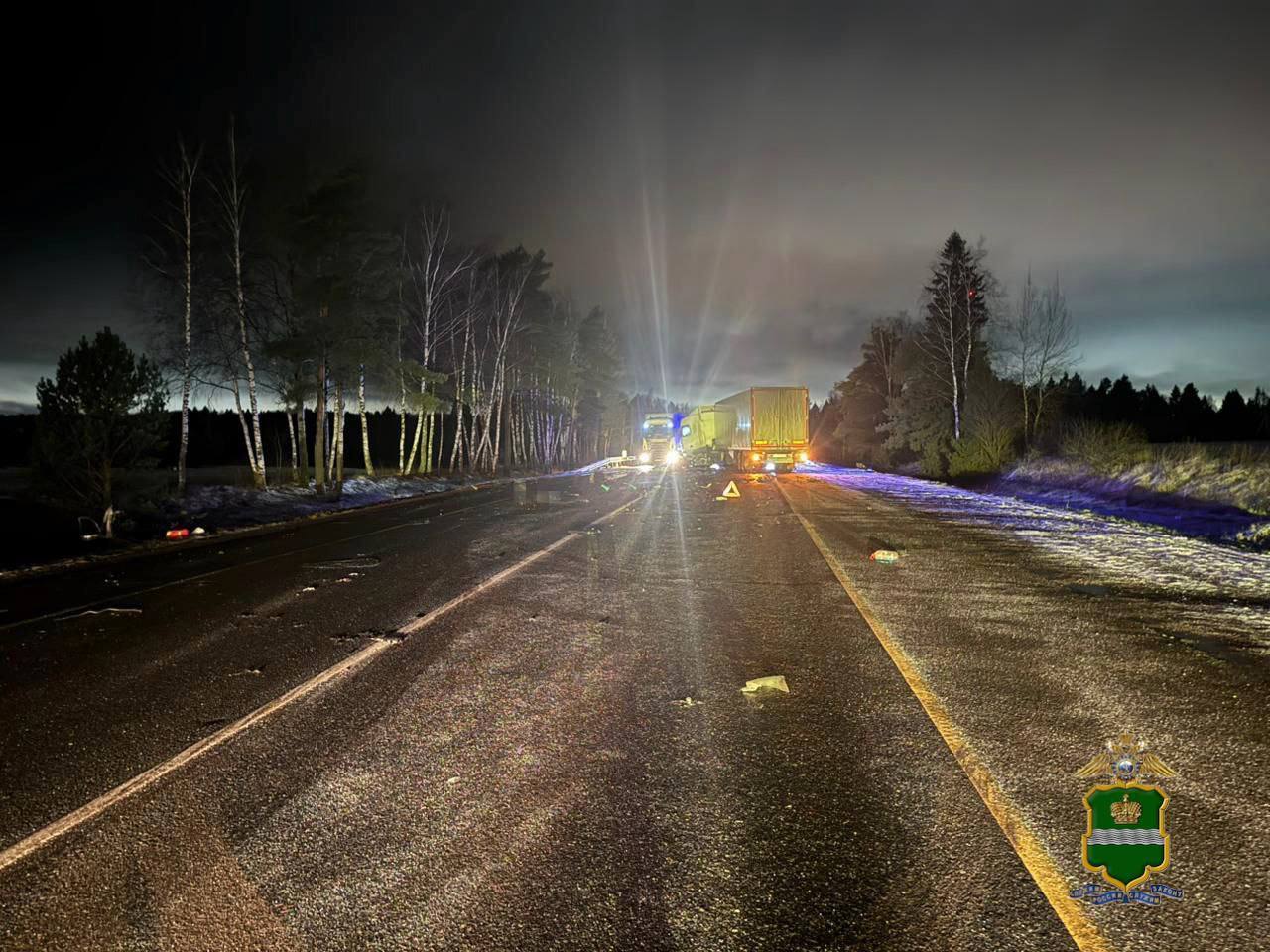 Вечером в понедельник на 385-м километре трассы А108 «МБК» в Жуковском округе водитель Mazda выехал на встречную полосу и врезался сначала в легковушку Isuzu, а затем в фуру DAF. После столкновения Mazda вспыхнула. Водитель этой машины и его пассажир погибли, водитель грузовика DAF получил травмы разной степени тяжести.