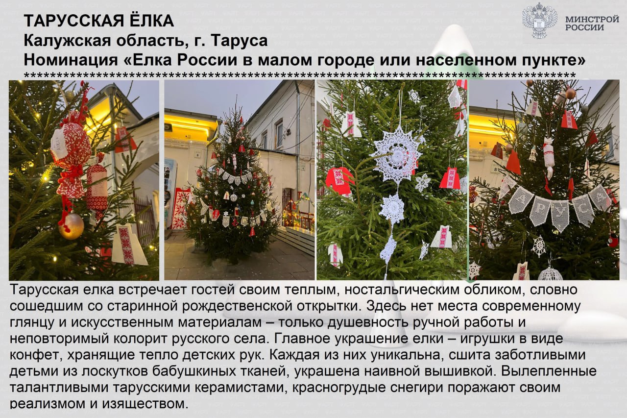 Ёлка из Тарусы участвует в онлайн-голосовании в номинации «Ёлка России в малом городе или населенном пункте». Все игрушки на тарусском дереве сделаны местными мастерами, рукодельницами и детьми.