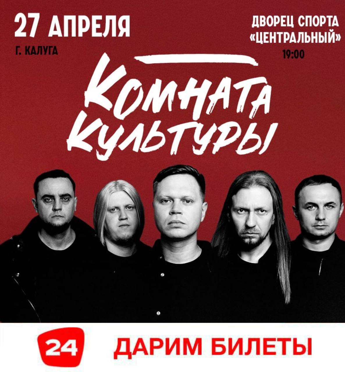 Барнаульская бард-рок группа «Комната культуры» сыграет большой концерт Калуге! Их хиты "Поезда", "Привет", "Море", "Ночь" прозвучат в ДС Центральном 27 апреля.