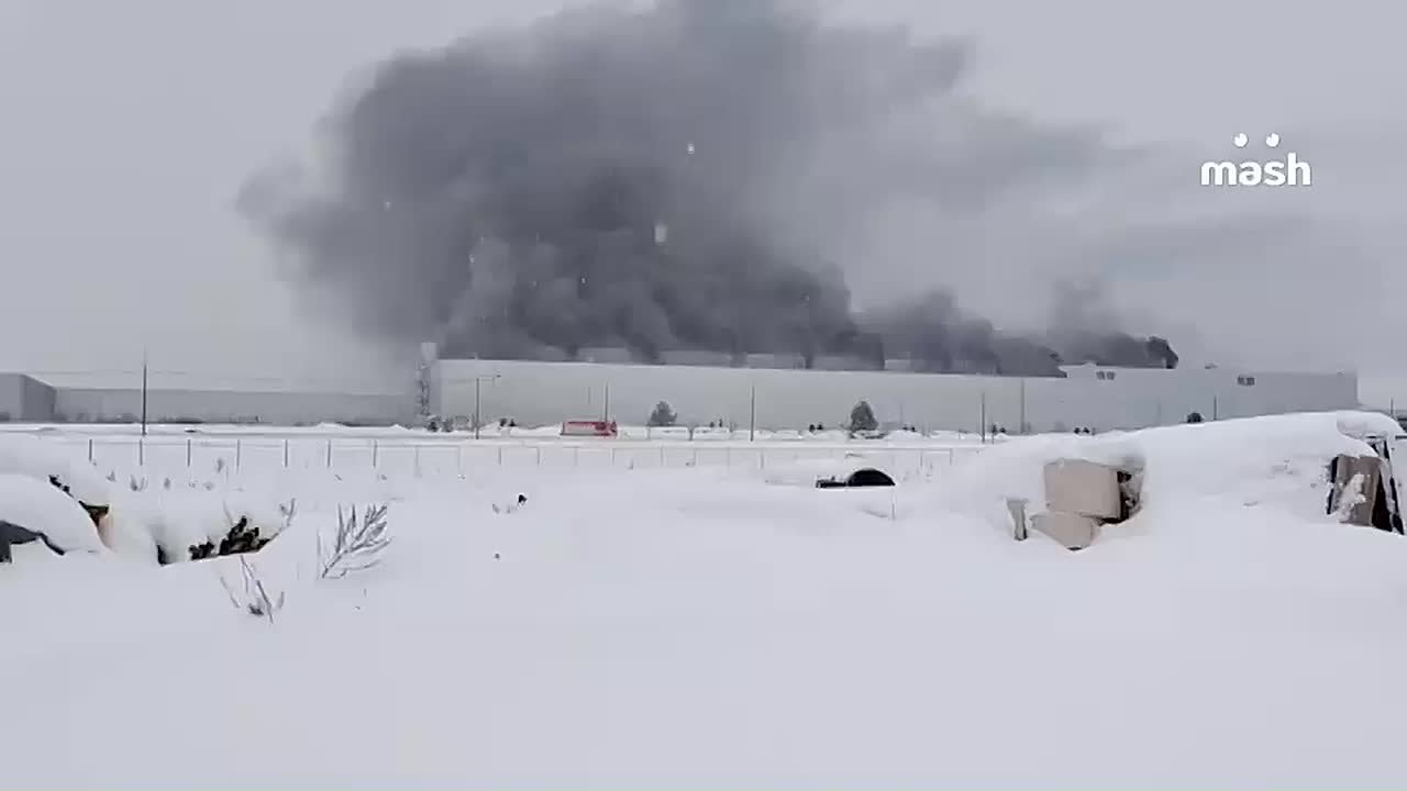 Мощный пожар на автомобильном заводе Volkswagen в Калуге, сейчас там собирают машины российского бренда Tenet (Chery).
