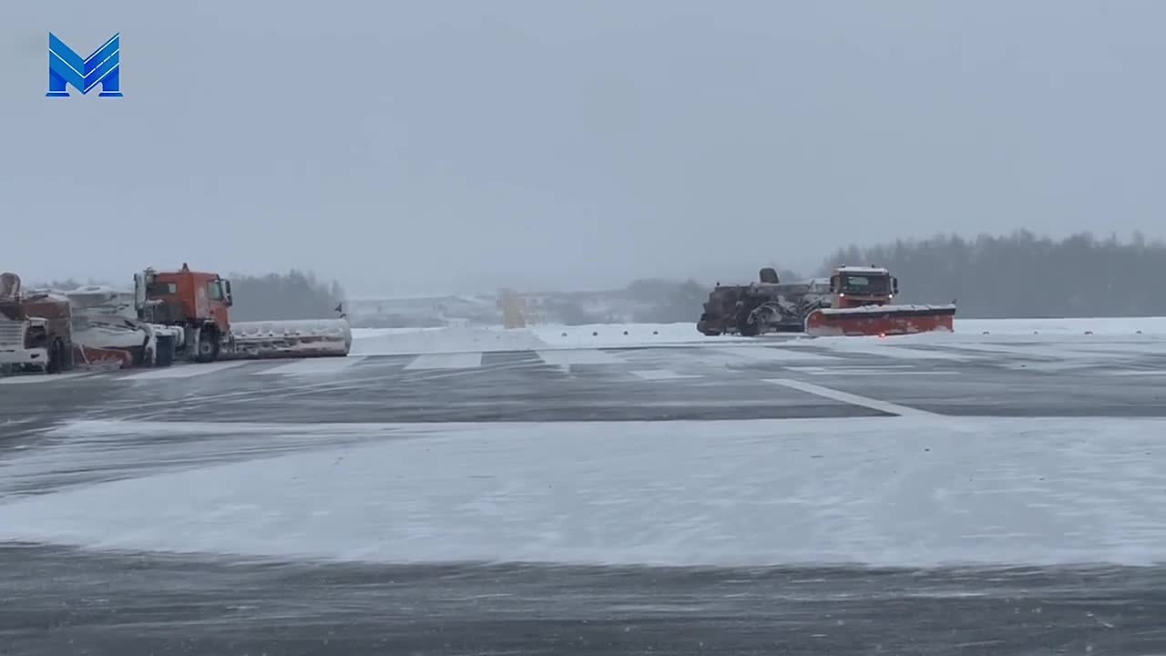 Как чистят взлётно-посадочную полосу калужского аэропорта. Благодаря такой мощной технике аэропорт продолжает работу в штатном режиме даже в сильные снегопады.