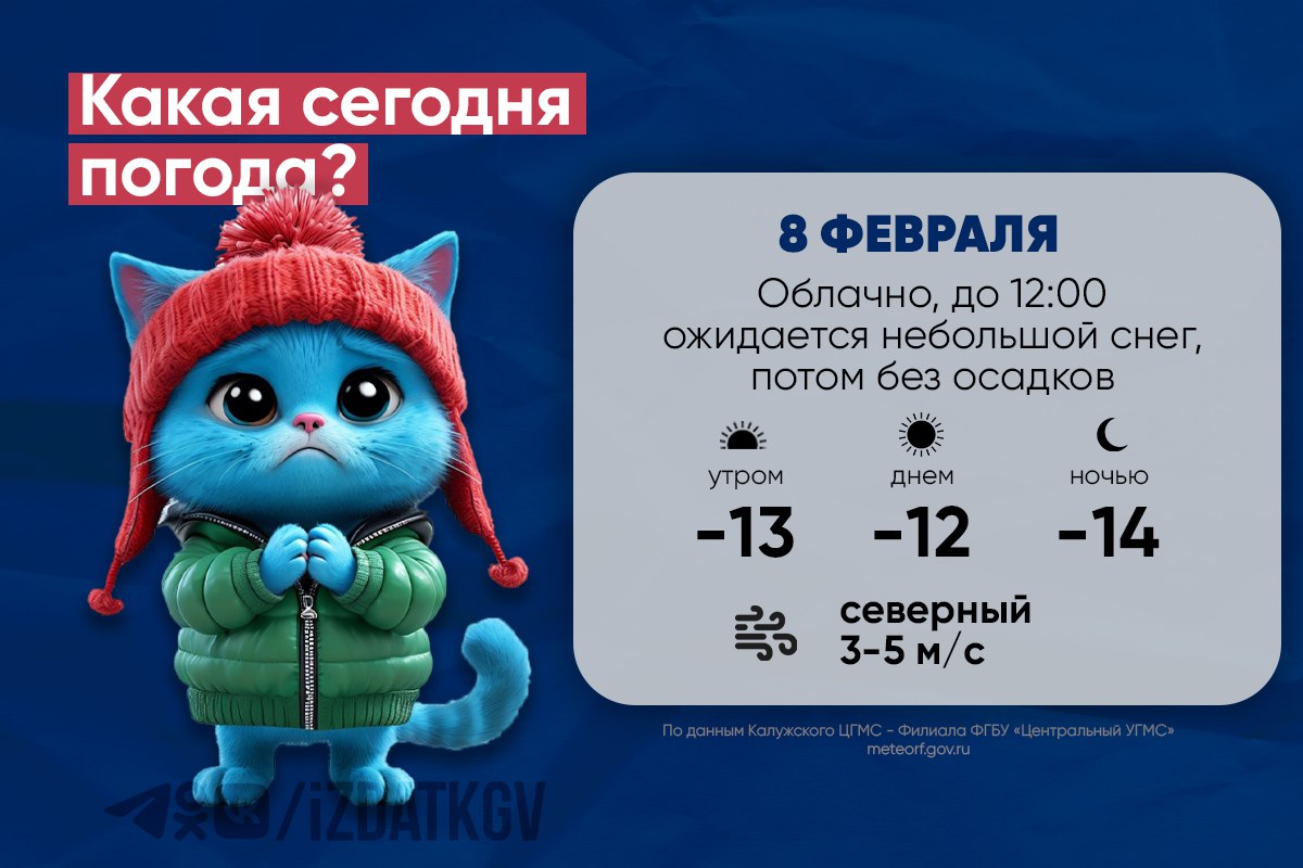 В воскресенье, 8 февраля, Калугу ожидает морозный и пасмурный день.Столбики термометров покажут около -11°C, однако северный ветер скоростью 4-5 м/с усилит холод: реальные ощущения составят -17°…-18°C.Небо будет затянуто облаками, возможен...