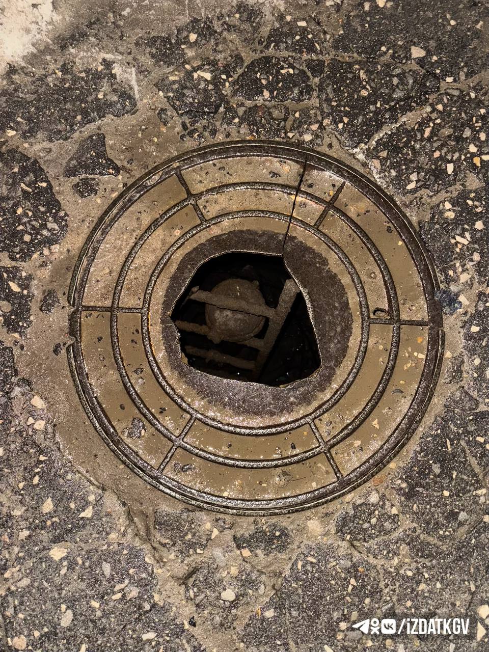 Дыра в люке на улице Пролетарской в Калуге
