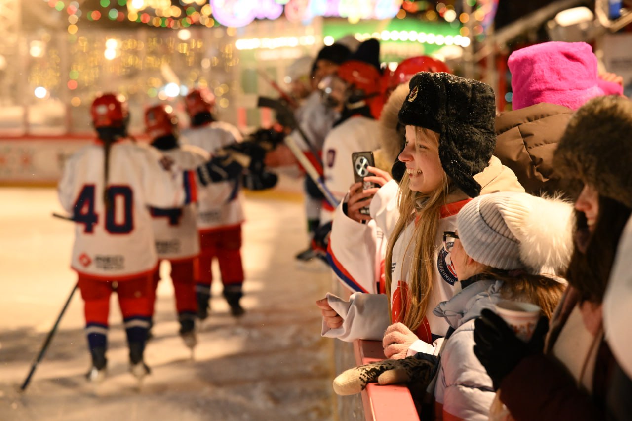 На льду – юные спортсмены академии. Главными болельщиками стали многодетные семьи и семьи участников СВО из Москвы и Подмосковья, Калужской, Тверской и Ярославской областей. Приехали и 30 ребят из ДНР и ЛНР.