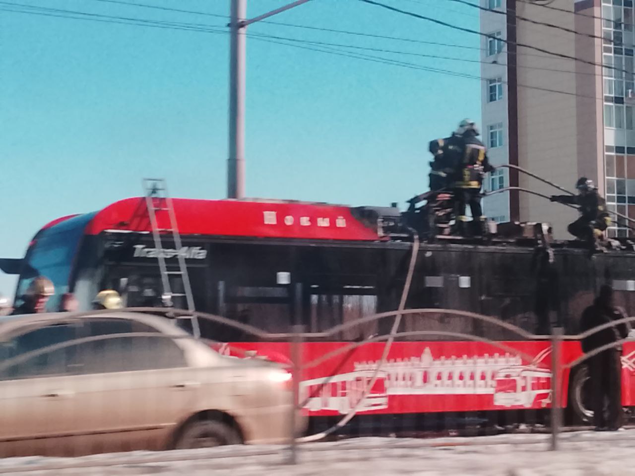Возгорание нового троллейбуса, который шел по маршруту 18 произошло на въезде в Кошелев. На улице Фомушина собралась огромная пробка. Транспорт задерживается на 40 минут. На месте работает МЧС.