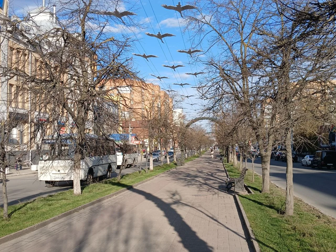 По информации городской администрации, пешеходную и проезжие части будут разделять кусты спиреи, которые высадили в прошлом году.