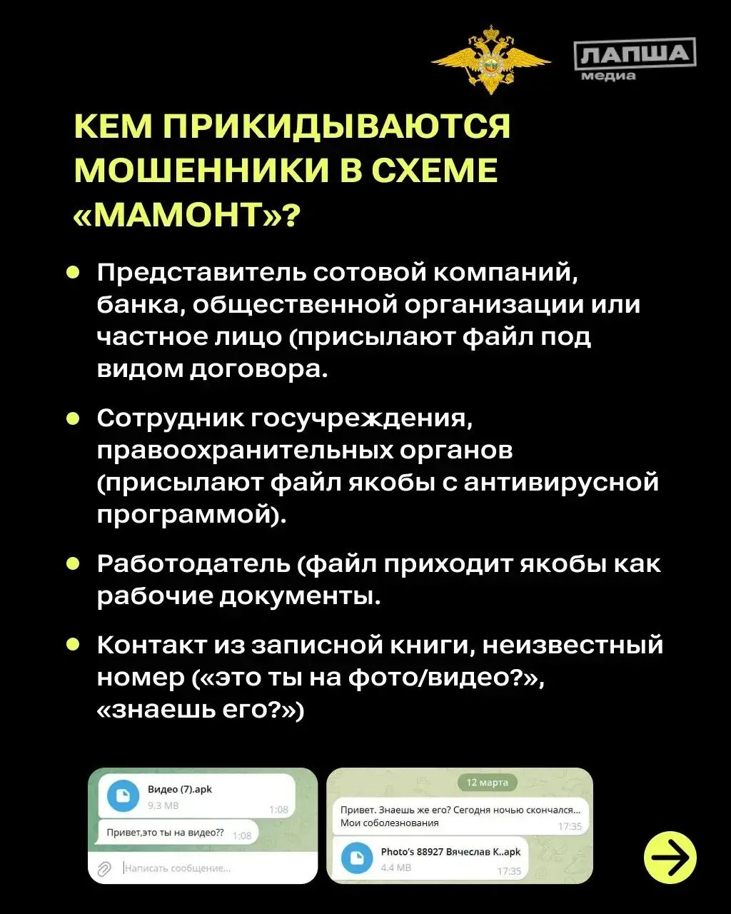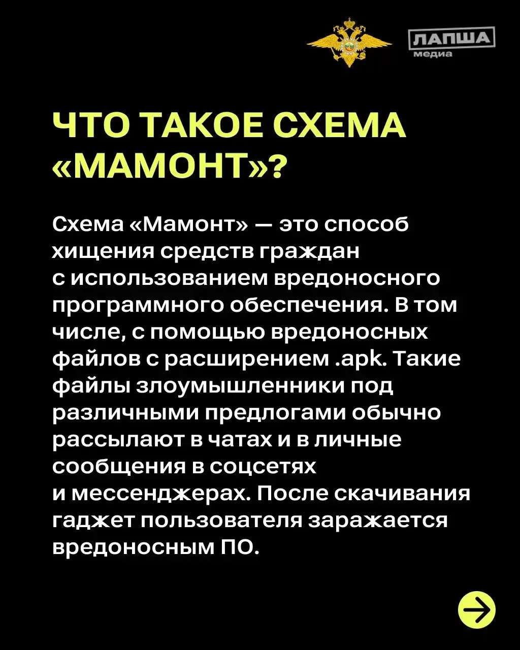 Подробнее о том, как не стать жертвой «Мамонта» читайте в карточках.