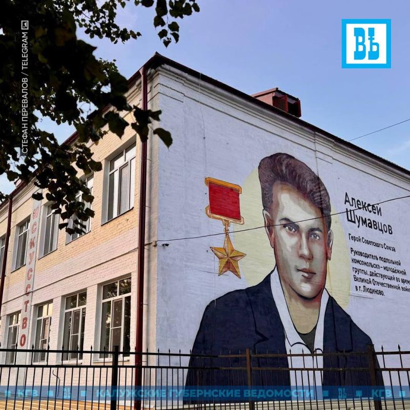 Фасад второй школы теперь украшен портретом Героя людиновского подполья. В скоро времени на мурале сделают подсветку.«История подвигов Алексея Шумавцова и всех героев людиновского подполья известна каждому школьнику и взрослому нашего города....