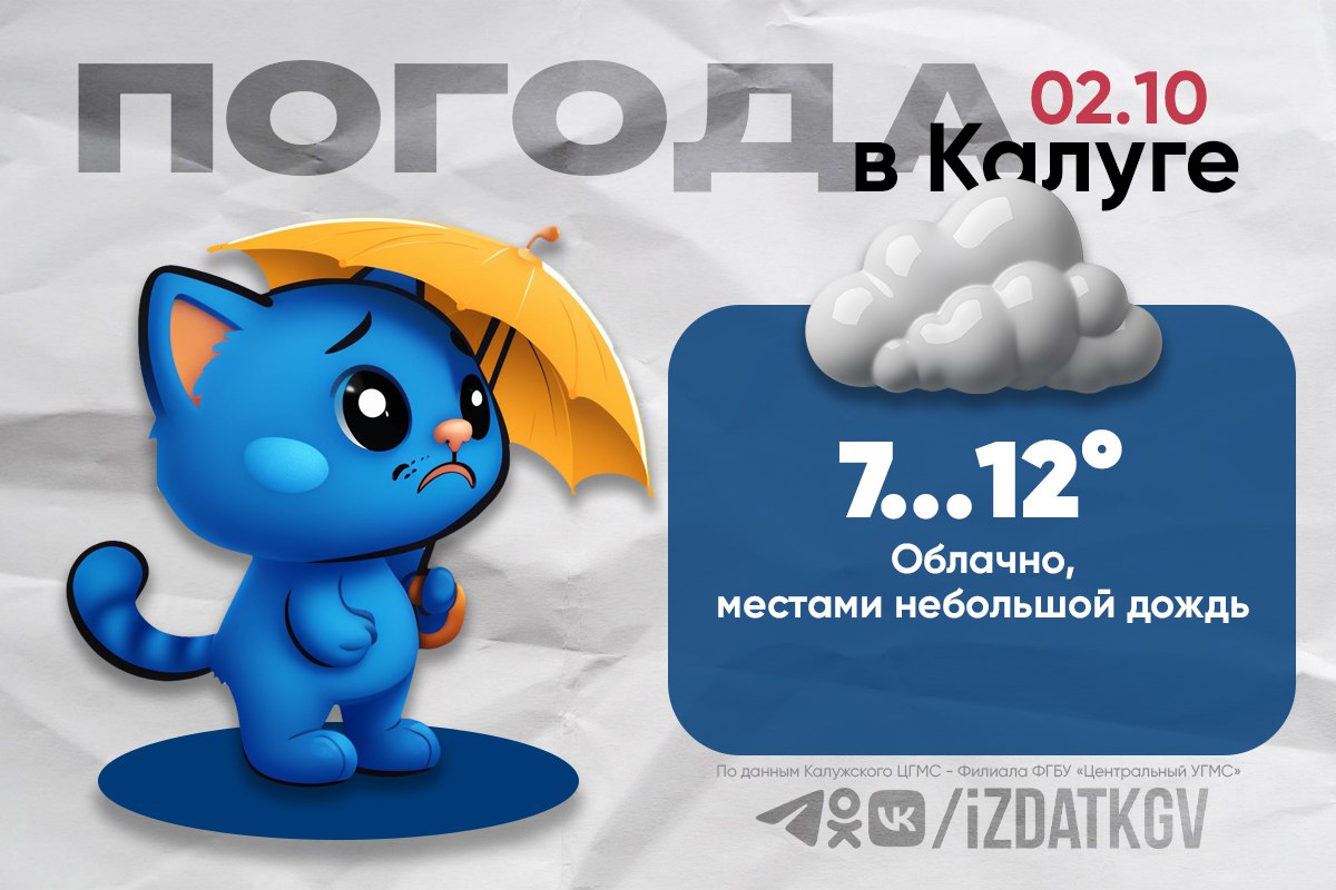 Сегодня в Калуге и области — облачно, местами небольшой дождь. Ветер юго-восточный 5-10 м/с.