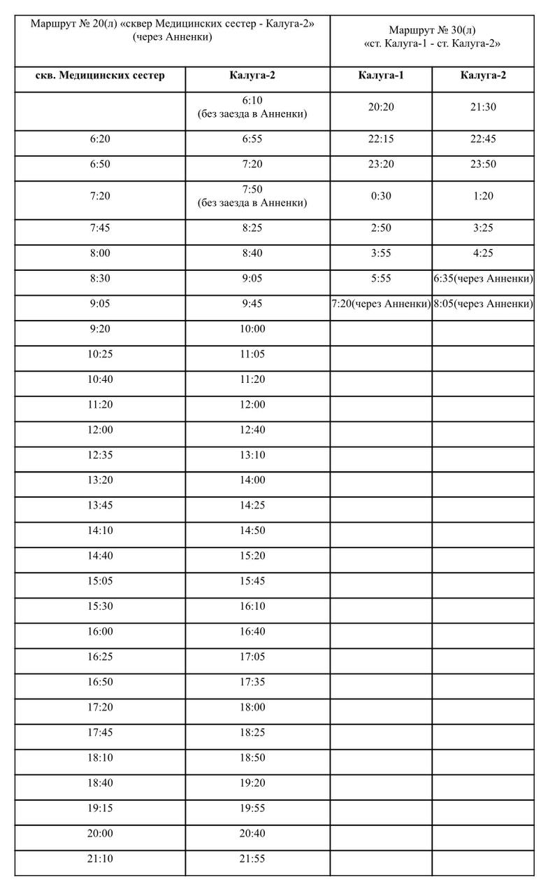 С 4 октября будет изменено расписание маршрутов № 20 (Сквер Медицинских сестер - Калуга-Сергиев Скит) и № 30 (Калуга I - Калуга-Сергиев Скит). Как сообщили в управлении горхозяйства, изменения в расписание внесены по многочисленным просьбам калужан.