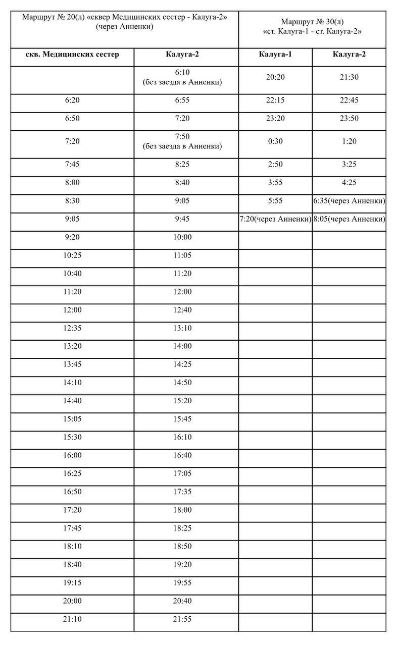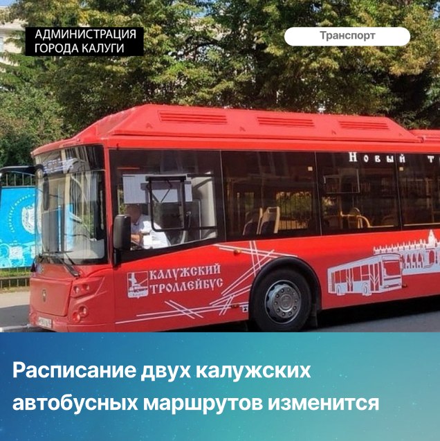 С 4 октября будет изменено расписание маршрутов № 20 (Сквер Медицинских сестер — Калуга-Сергиев Скит) и № 30 (Калуга I — Калуга-Сергиев Скит).