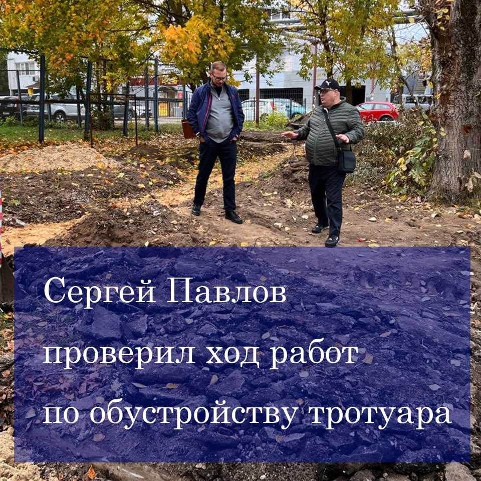 Зампредседателя Думы городского округа города Калуги Сергей Павлов проверил ход работ по обустройству тротуара в районе дома № 19 по улице Билибина и на переулке Литейном.