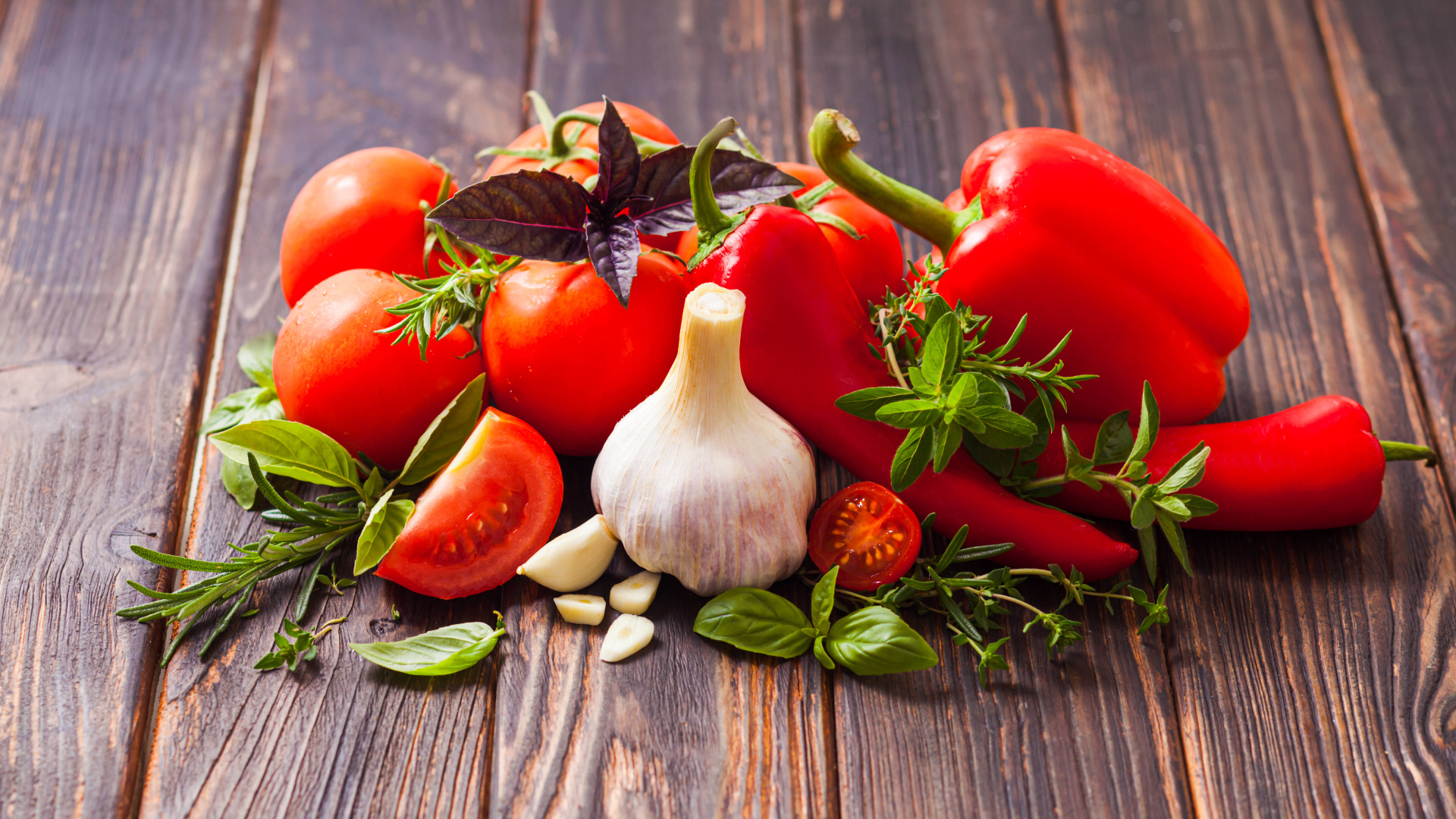 Перед готовкой тщательно промойте все овощи. Вырежьте сердцевину у сладкого перца, у помидоров уберите хвостики. Чеснок нужно очистить. Потом все ингредиенты прокрутите через мясорубку. Добавьте к ним соль и сахар. Получившуюся смесь можно оставить в холодильнике на одну ночь.