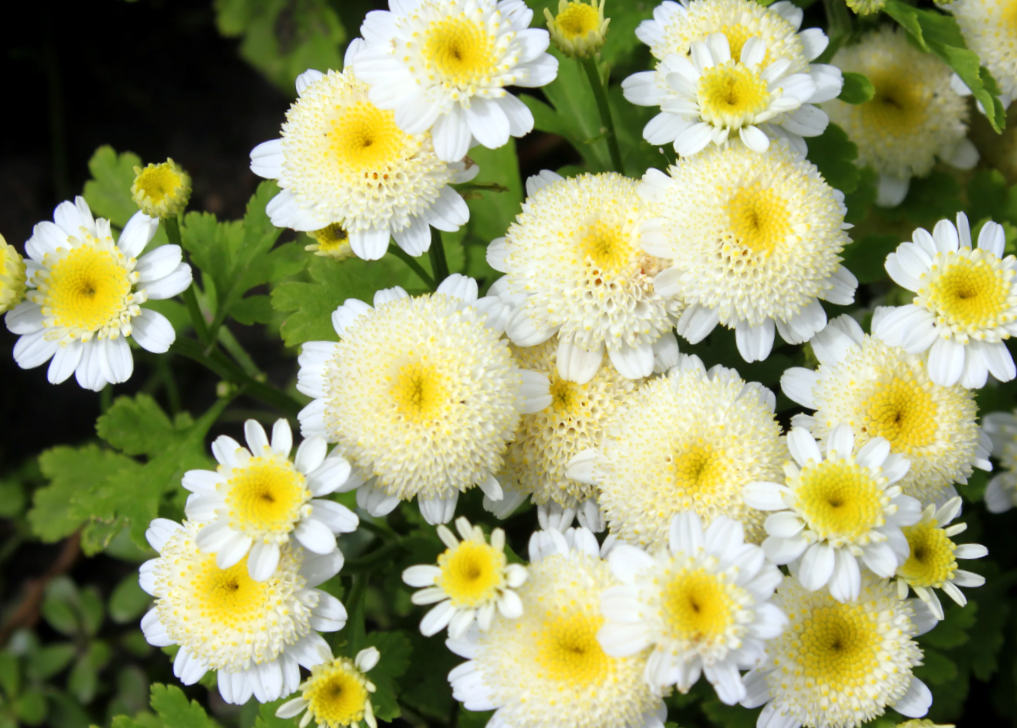 Куст матрикарии достигает высоты около локтя, его листья тонкие и перистые, а цветы напоминают миниатюрные ромашки. Существует множество сортов, среди которых: