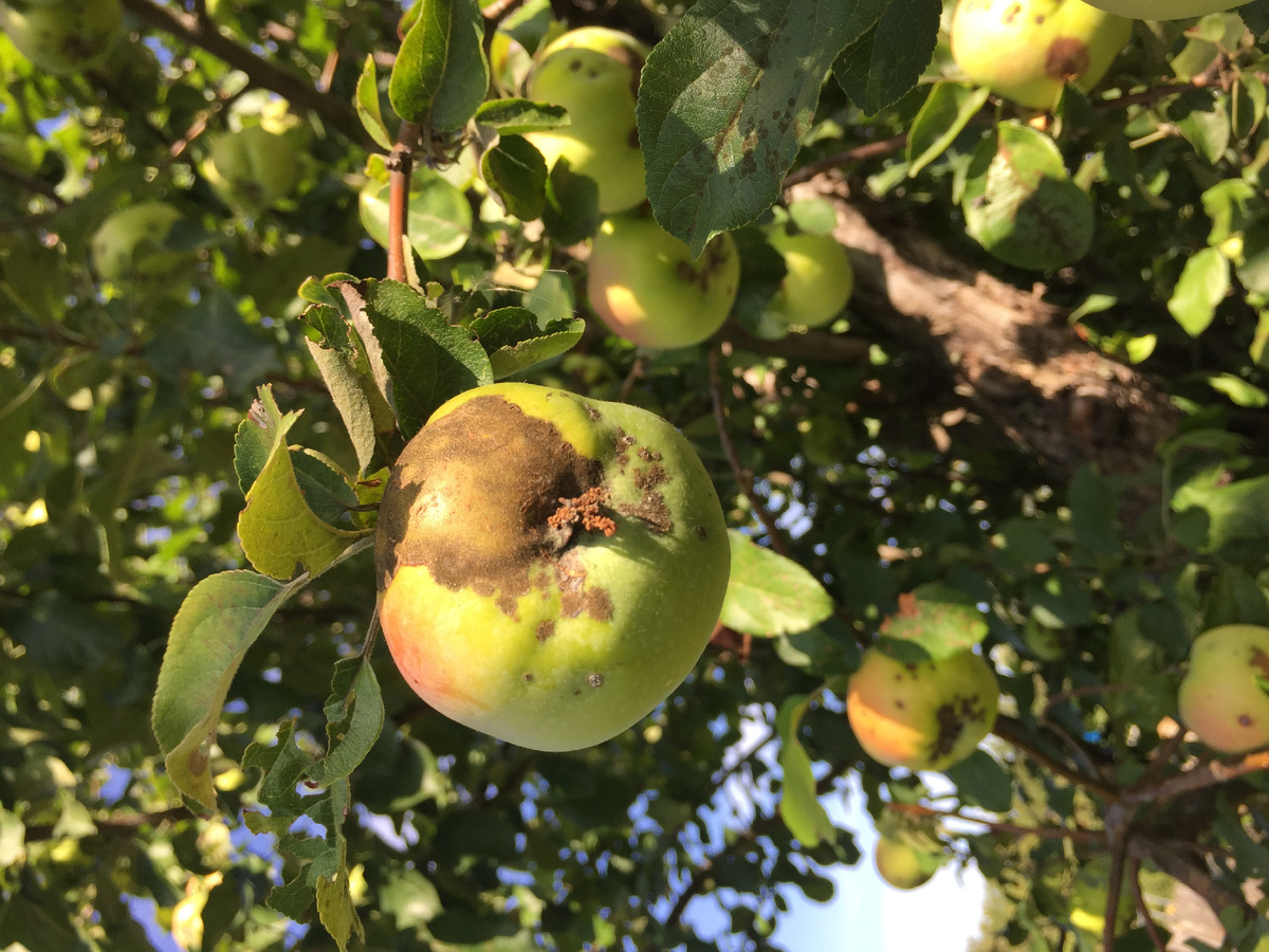 Первые заметные признаки парши — это оливково-черные пятна на листьях и деформированные плоды. Если такие симптомы появились, это сигнал о том, что грибок уже обосновался на ваших деревьях. Борьба с ним начинается с уборки опавших листьев. Они являются прекрасным укрытием для споров, которые весной вновь атакуют растения. Листва должна быть убрана и уничтожена, а не оставлена под деревьями или отправлена в компост.