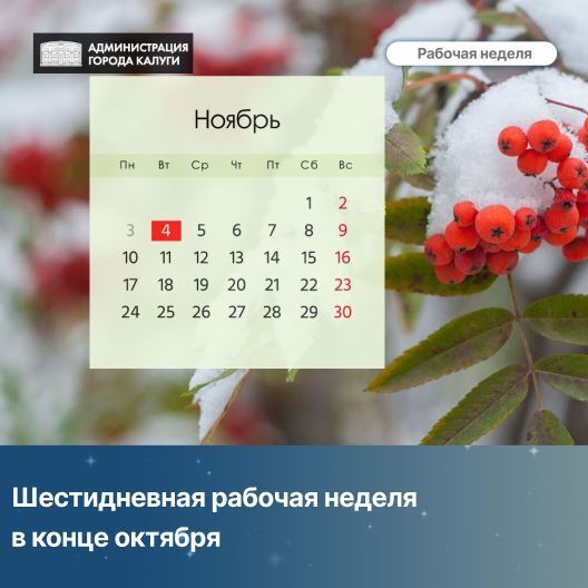 Работать будем шесть дней в последнюю неделю октября с 27 октября по 1 ноября