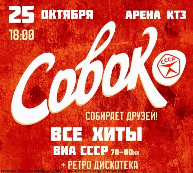 Окунитесь в атмосферу золотой эпохи советской эстрады на концерте ВИА "Совок" 25 октября на сцене Арена КТЗ! В программе — все хиты легендарных ВИА СССР 70–80-х годов и яркая ретро-дискотека, которая подарит незабываемые эмоции и отличное настроение.