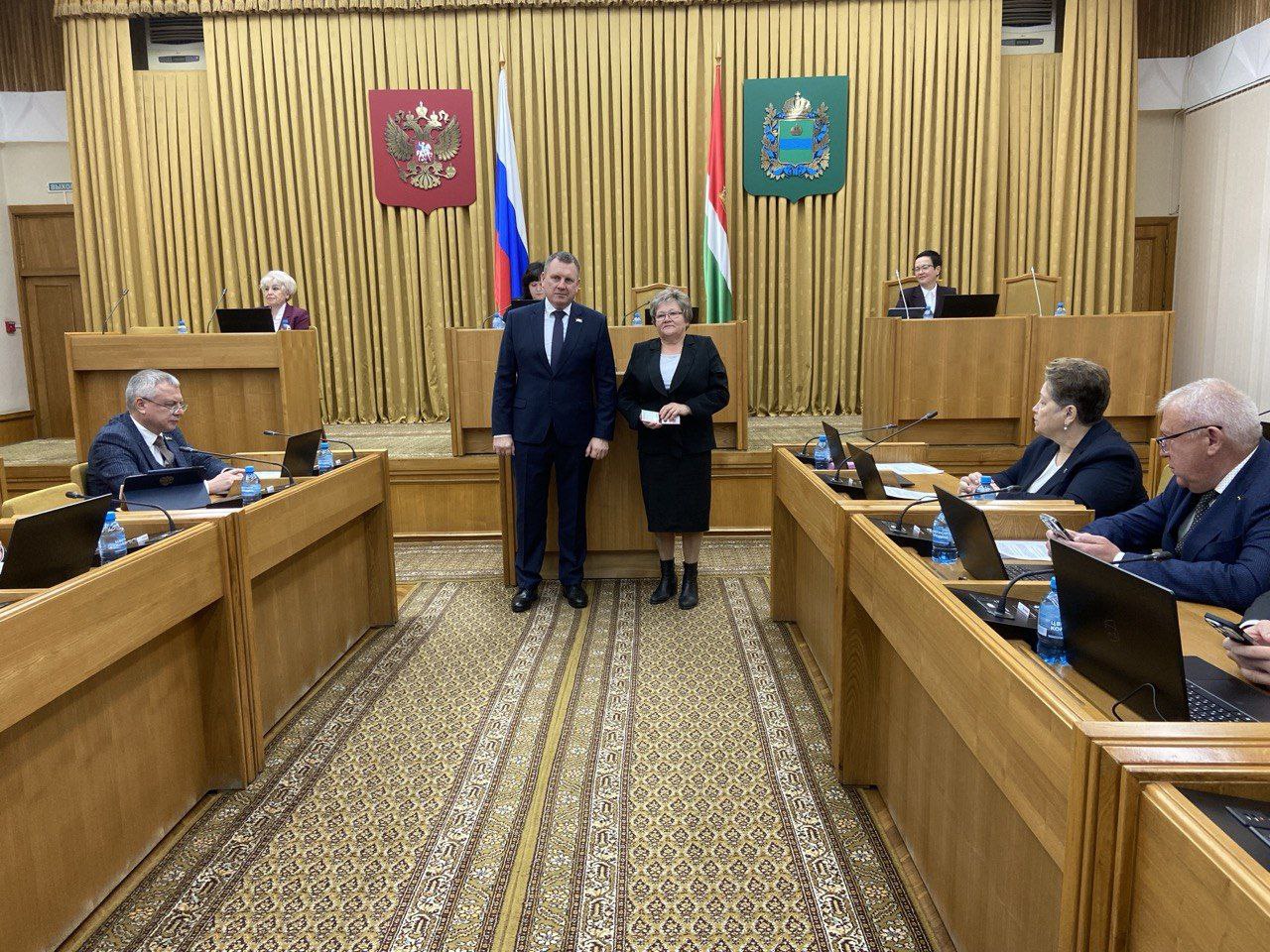 16 октября на заседании сессии Законодательного Собрания спикер парламента Геннадий Новосельцев вручил коллегам удостоверения и нагрудные значки.