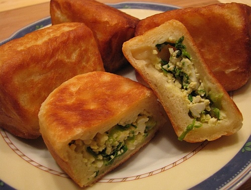 Начинка готовится легко: сливочное масло растапливается на сковороде, добавляется нарезанный зелёный лук и обжаривается всего 1-2 минуты. Варёные яйца необходимо переработать в мелкие кусочки и смешать с луком, приправив солью. Охладив начинку до комнатной температуры, можно переходить к завершающему этапу.