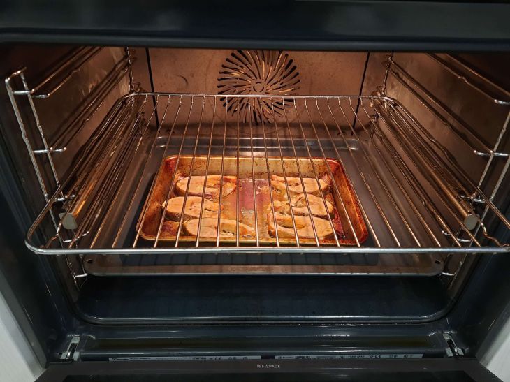 Через 30 минут откройте духовой шкаф и дайте посуде остыть. Потом губкой снимите остатки не отошедшего нагара и помойте обычным способом.