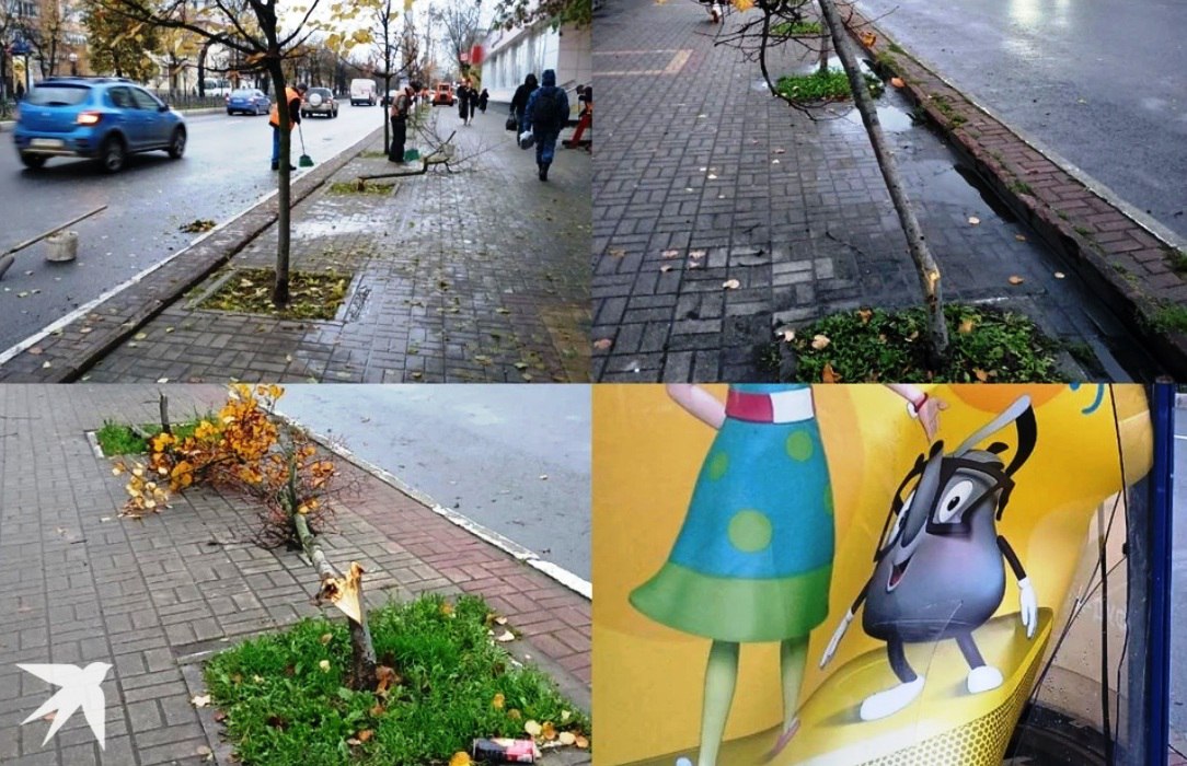 Также пострадала тумба системы «Безопасный город» — на ней было разбито стекло. На утро 20 октября последствия вандализма еще не были устранены, сломанные деревья оставались на месте.