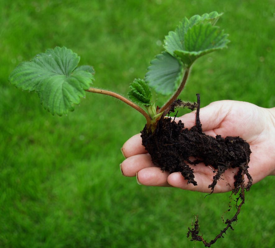 Существует несколько способов размножения садовой земляники. Наиболее популярные из них — размножение усами и делением куста (рожками). Усы, которые формируются в течение всей вегетации, просто укореняются, и получить новые растения таким образом легко.