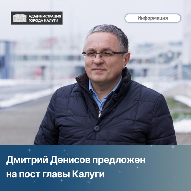 Всероссийская ассоциация развития местного самоуправления и партия «Единая Россия» предложили Дмитрия Денисова на должность главы Калуги. Процедура отбора проходит поэтапно: рассмотрение кандидатур осуществляет специальная комиссия, после чего губернатор Владислав Шапша вносит эти кандидатуры на рассмотрение депутатов Городской Думы, которые и принимают окончательное решение.