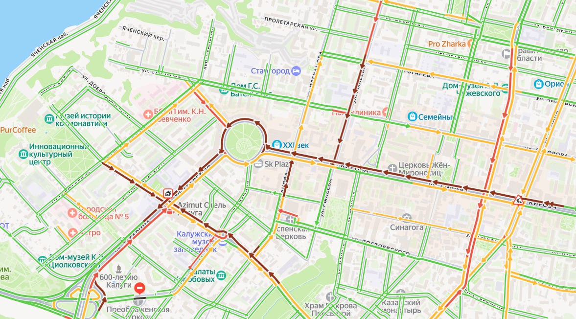 Значительные затруднения движения возникли во вторник днем в центральной части Калуги из-за ДТП на перекрестке улиц Гагарина и Королёва. Столкновение транспортных средств привело к образованию многокилометрового затора.Пробка растянулась по основным...
