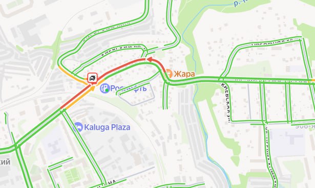 Пробка по Киевке образовалась со стороны Турынино в центр города, сообщают очевидцы.