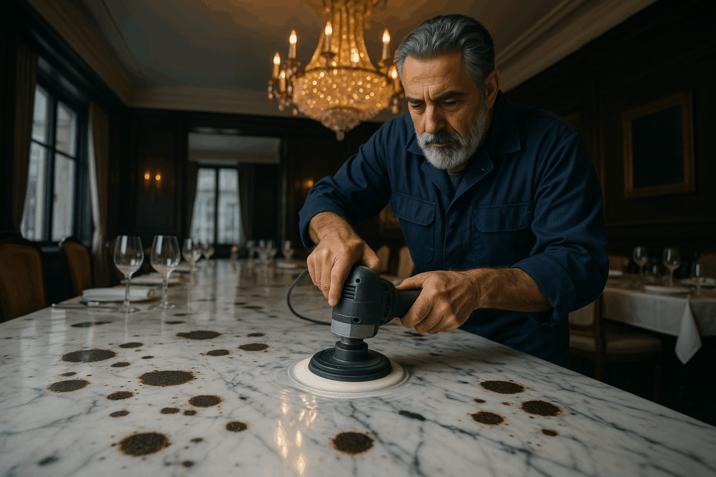 Профессиональная полировка и регулярное обслуживание также помогают улучшить состояние уже поврежденных столешниц, придавая им свежий вид. Метод включает глубокую полировку с удалением слоев и использование специальных импрегнаторов для борьбы с проникновением жидкостей.
