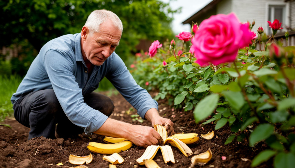 Кожура банана является настоящим кладезем полезных веществ, в первую очередь калия, который необходим для цветущих растений, таких как розы. Это необычный, но эффективный способ внести удобрение в грунт. При достаточном количестве калия цветы становятся крепче и менее подвержены неблагоприятным погодным условиям. Садоводы отмечают, что благодаря такому методу лепестки остаются целыми даже после дождя.